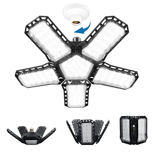 CreateStar 120 W Workshop Lamp LED -takljus, 12000 lumen LED Garage Light med 5 justerbara utbytbara klädda E26/E27 -verkstadsbelysning för biljard salong, lager, garage, gym
