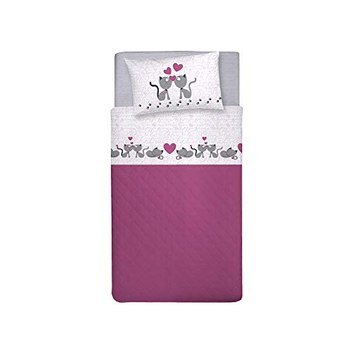 PENSIERI DELICATI Set med 1 mellanstor säng 100% bomull, set med lakan 1 mellanstor säng 120 x 200 med underlakan, topp och 1 örngott, Made in Italy, Fantasi kattungar rosa