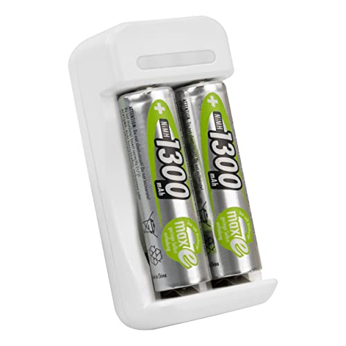 ANSMANN Basic II batteriladdare + 2 uppladdningsbara batterier HR6 1300 mAh 1,2 V (1 st) - miniladdare för 1 till 2 NiMH söta AA/mikro-AAA-batterier - kompakt batteriladdare