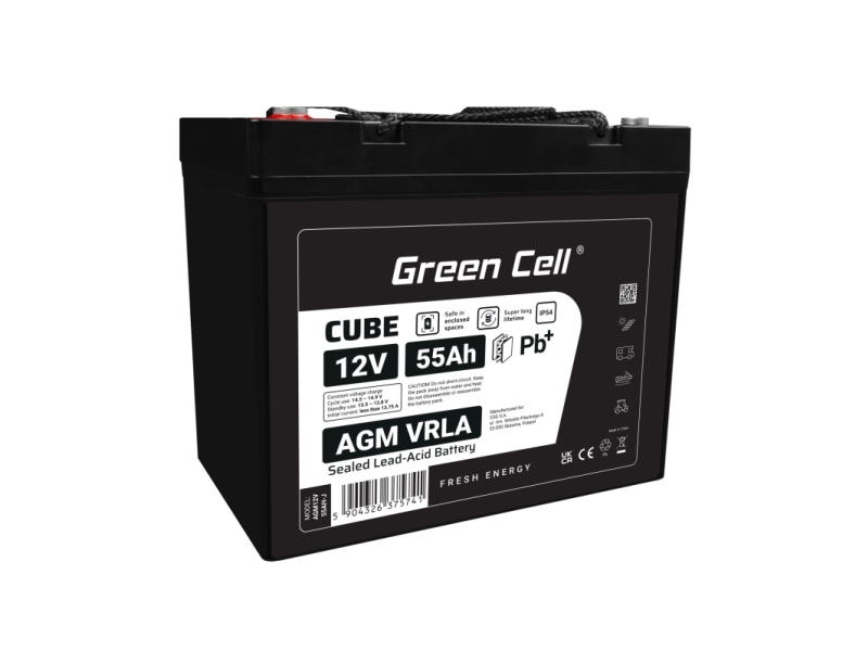 Green Cell Agm12v55ah-J, Slutna Blybatterier (Vrla), 12 V, 1 Styck, Svart, 55 Ah, 5 År