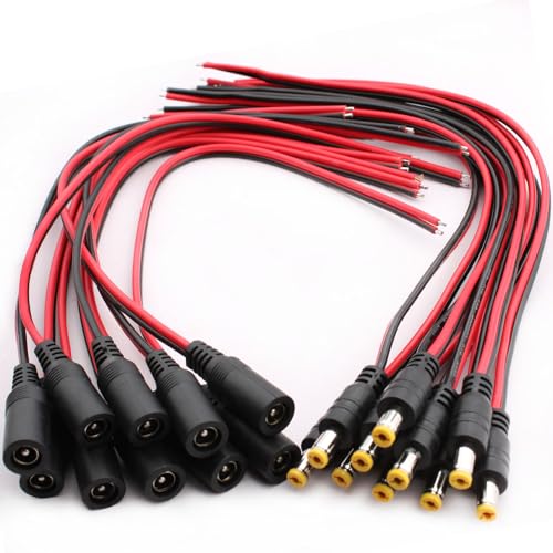 YIXISI 20 Par DC Power Pigtail-kabel (18AWG Ren Koppartråd), 12V 5A Manliga och Kvinnliga Kontakter Strömadapter Kontakter för Hemsäkerhet Kamera och Festbelysning