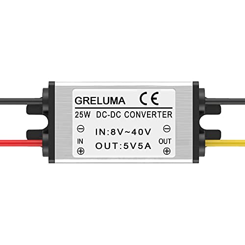 Greluma 1 Styck DC 12V 24V till 5V 5A Steg ned spänningsomvandlare (8-40V ingångar), 25W Power Regulator Module Spänningsreducerare för bil Lastbil Båt Solar System