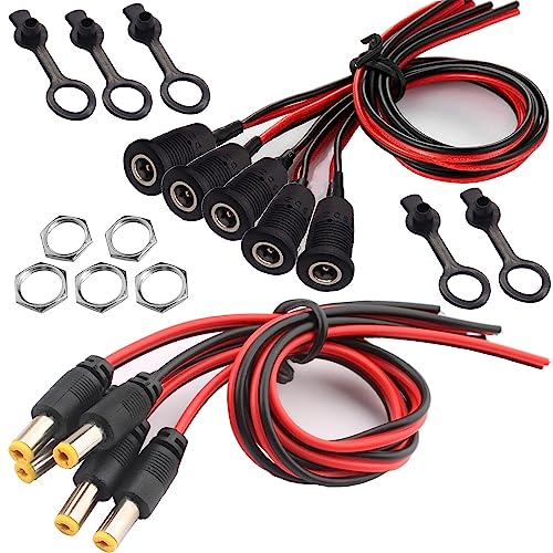 RUNCCI-YUN 18 AWG 12 V 5 A 5,5 x 2,1 mm Power Jack Socket Set, 5 x DC Power Jack Socket lågvolts kontakt 5,5 x 2,1 mm (med kabel) 5 x 12 V 2 A DC-uttagspanelfäste 5,5 x 2,1 mm