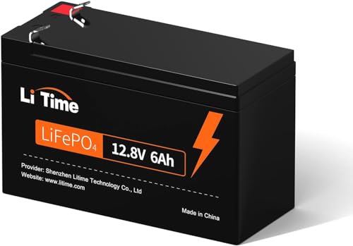 LiTime 12V 6Ah LiFePO4 Batterie, 76,8W wiederaufladbare Lithium-Batterie mit 6A BMS, 4000+ tiefen Zyklen, geringe Selbstentladung, für Fischfinder, LED-Licht, Überwachungskamera, Spielzeug, Camping