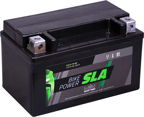 intAct - Bike-Power SLA12-7Z-S, CTZ7-S, motorcykelbatteri 12V 6Ah 80A (EN), AGM-batteri för skotrar, motorcyklar, fyrhjulingar, grästraktorer och mycket mer, underhållsfritt och läckagesäkert batteri