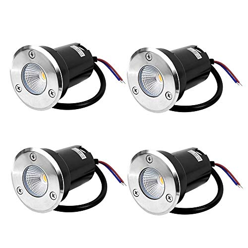3W COB LED Ljus Buried lampor Mini Sized Utomhus Ground Lights IP67 Vattentät Infälld i Decking lampor för Square Garden Lawn Pond Pathway Steg Deck (4 st) (Färg : Varm vit, Storlek : 12V-3W)