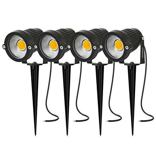 AHOTSUK Utomhus trädgård spotlights 350 LM utomhus spiklampor eldrivna LED landskap spotlights 5 W 12 V 24 V IP66 vattentät lampa för gångväg gräsmatta uteplats trädgård varm vit (4-pack)