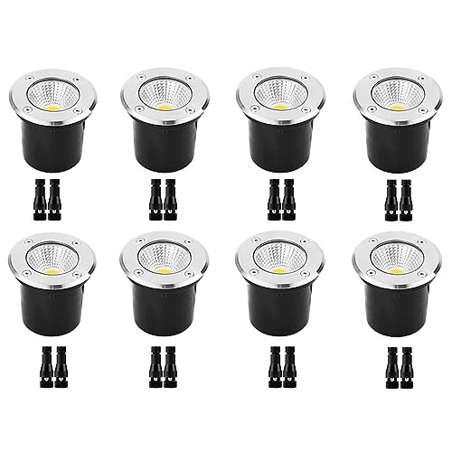 8 st marken LED landskapslampor – utomhus begravda lampor, 12 V lågspänning COB LED mark infälld spotlight, IP67 vattentäta trädgårdsljus, för utomhustrappor, uppfart, däck (färg: Kall vit, Si