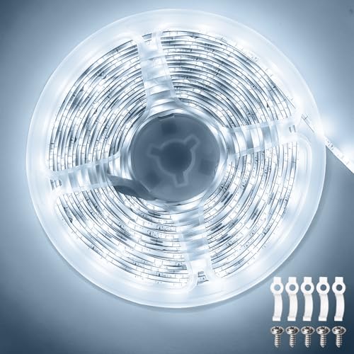 ShineBurky LED-lampor rum 5 meter kall vit, 12 V LED-remsa självhäftande vattentät IP65 remsa flexibelt ljus inomhus utomhus kök jul gör-det-själv dekoration (inte strömadapter)