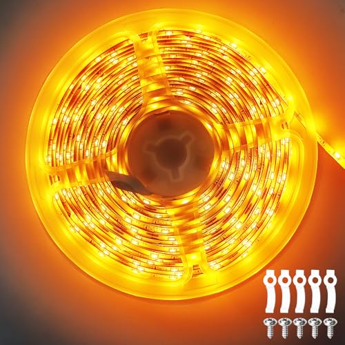 ShineBurky LED-lampor rum 5 meter gul, 12 V LED-remsa självhäftande vattentät IP65 strip ljus flexibelt kök inomhus utomhus jul hotell dekoration (ingen strömadapter)