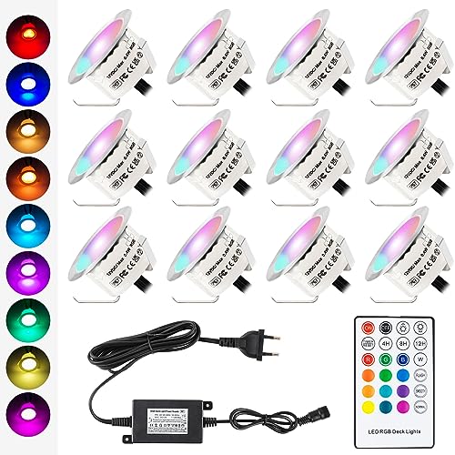 dystaval 12 stycken infällda RGB-LED-golvlampor för utomhus, 12 V DC, 0,8 W, Ø 42 mm, LED-spotlights med fjärrkontroll, dimbara, IP67-vattentäta, för utomhus, kök, trädgård, gångväg och träbro