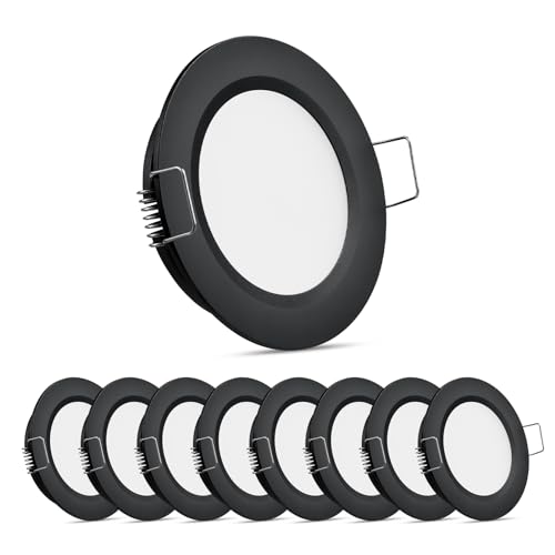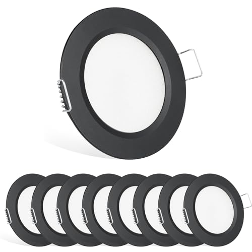 acegoo 12V infälld lampa, taklampa, LED, infälld spotlight, platt spotlight, downlight, 3000K för husbil, båt, husvagn, kök, badrum, full aluminium, 8-pack (svart)