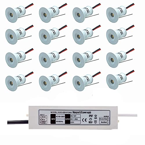 Mini LED downlight 12V 1W takstrålkastare 15mm infälld dimbar spotlight med 36W transformator, 16Pack LGJEGD (Color : Warm white 3000K, Size : 120 degrees)