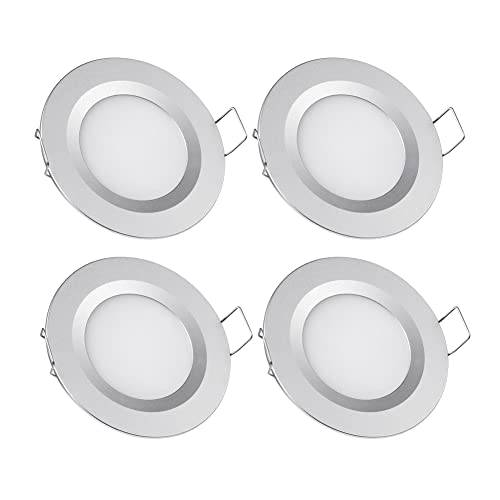 Obeaming 4 x DC 12V downlight infälld LED taklampa interiör hål 58mm för båt husbil lastbil släpvagn kök under skåp belysning, 2,5W 70mm 215 lumen silver 3000K(utan transformator)
