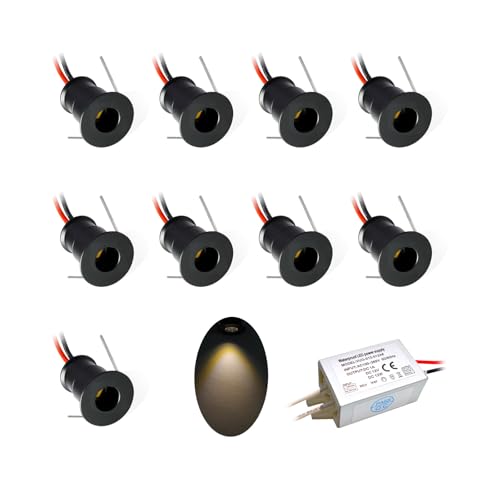 kpslucerna Liten LED-spotlight, 10 stycken, 0,5 W, miniinfälld spotlight, tak, 12 V, kök, trappa, skyltfönster, korridor, gör-det-själv, downlight (svart, varmvit)