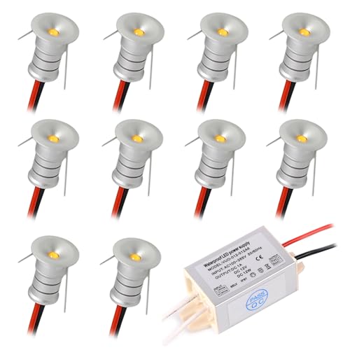kpslucerna Liten LED-spotlight, 10 stycken, 0,5 W, miniinfälld spotlight, tak, 12 V, kök, trappa, skyltfönster, korridor, gör-det-själv, downlight (silver varmvit)