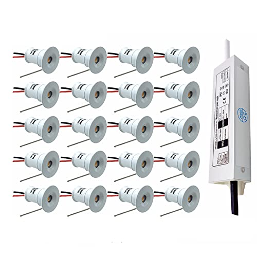 HHTUN 902 Led Mini Downlight DC12V 1W, lämplig för bokhyllor, skåp och olika skåp som dekorativa ljus, inbyggd installation, mjuk belysning, med strömförsörjning (3000K, vit, 9Pack)