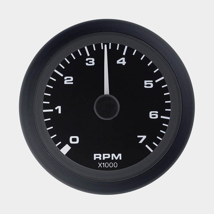 Varvräknare för utombordare / bensinmotor Veethree Black Premier, imfri, Ø86 mm, 12 V, generator / tändspole, svart, 0 - 7000 rpm