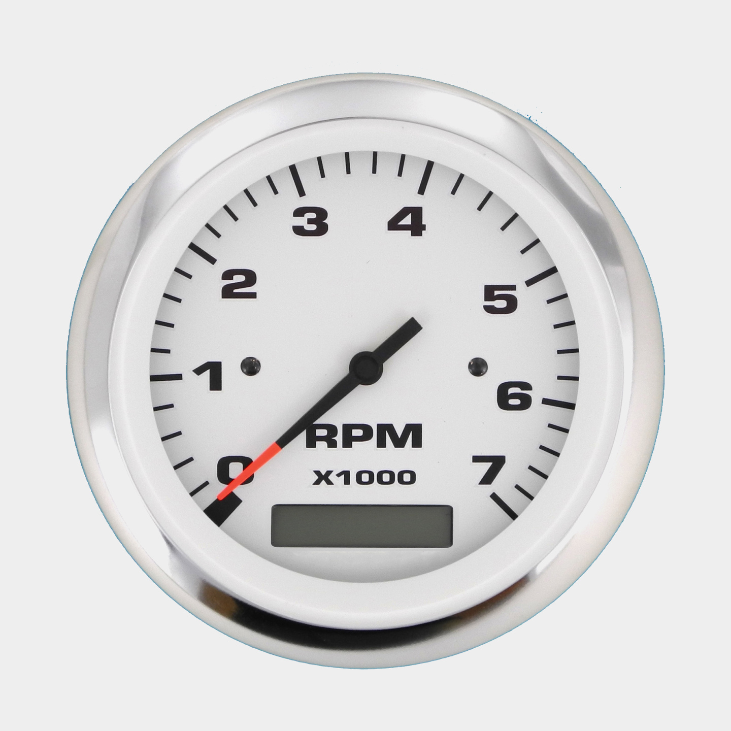 Varv- & timräknare för utombordare / bensinmotor Veethree Lido, imfri, Ø86 mm, 12 V, generator / tändspole, silver/vit, 0 - 7000 rpm
