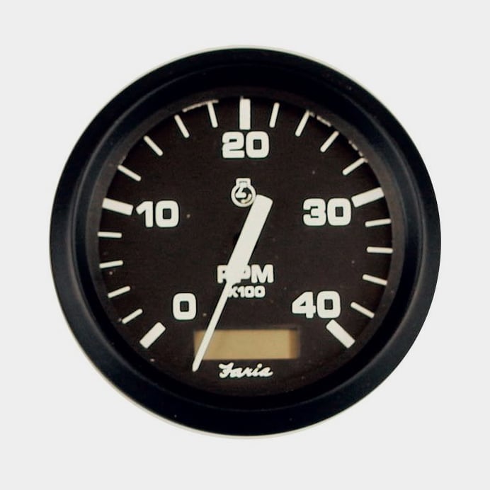 Varv- & timräknare för dieselmotor Faria Beede Euro "4 Tachometer Hourmeter, imfri, Ø85 mm, 12 V, generator, svart, 0 - 4000 rpm