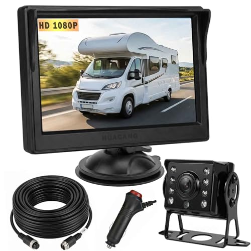 HUACANG 4-stifts backup-kamera parkeringsassistanssystem, 12 V-24 V 5 tum TFT LCD HD färg backskärm + 8 lysdioder mörkerseende vattentät omvänd omvänd kamera