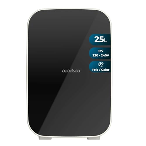 Cecotec 25 l litet kylskåp, Bolero MiniCooling Bahamas Black, 12V-220 V, kompatibel med bilar och husvagnar, 7 till 65 °C, kyl- och uppvärmningsfunktion, enkel transport