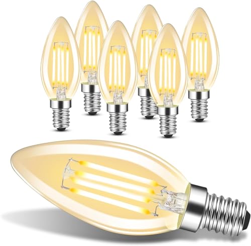 BHMAOYN C35 E14 LED-Kandelaberslampa 12V 24V 4W,400LM,AC/DC 12V E14 Varm Vit 2700K ersätter E14 40W kandelaberslampa,liten 12V LED-lampa för camping och trädgård,ej dimbar,uppsättning om 6
