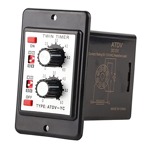 Twin Timer Relay, On Off Knob Control Time Switch Short Period Repeat Cycle Intermittent Timer Interval Timer(DC12V)