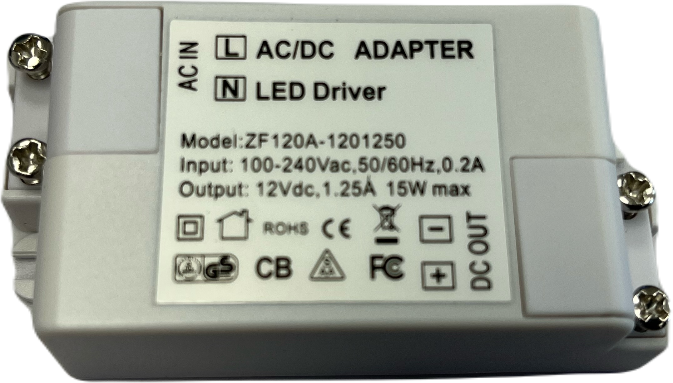Poppstar SLIM trafo (för 0,15 till 15 Watt LEDs) extra platt LED-transformator 230 V AC/ 12 V DC 1,25 A