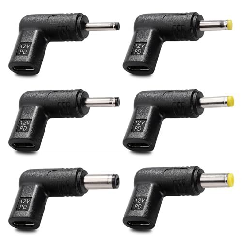 KUOQIY 6 ST USB C till DC 12V Adapter Set, USB 3.1 Typ C USB-C Hona till DC Hane Adapter PD Emulator Trigger 90 Grader Vinklad, för Routrar, Optiska Modem, Övervakningsutrustning