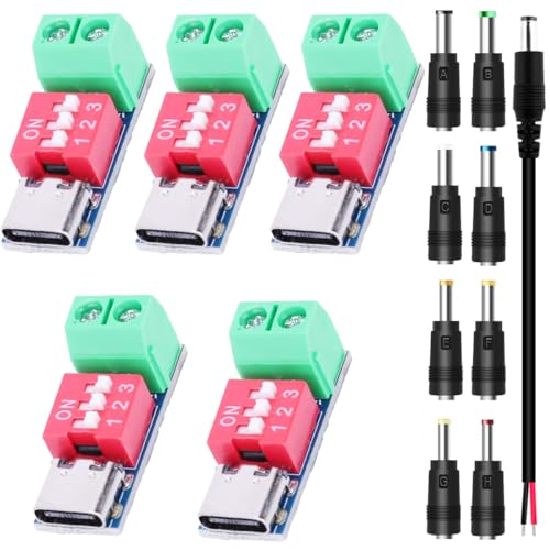 Youmile 5 st PD Trigger-modul USB-C snabbladdningsavkodningsavtryckarmodul 5 V 9 V 12 V 15 V 20 V konstant spänning fast utgång med urtavla, justerbar spänning med DC-anslutningskit DC hankabel