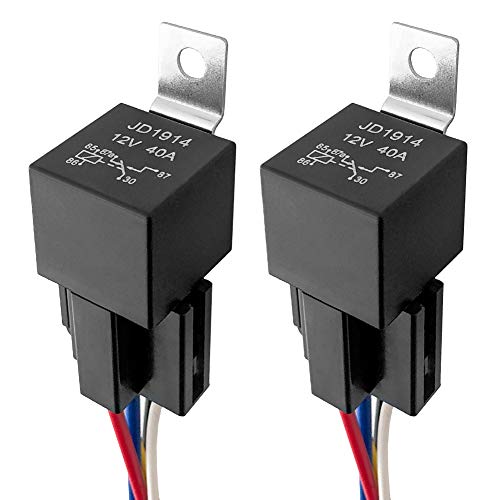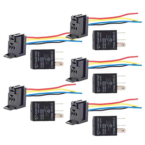 Gebildet JD1912 bilreläsele, 12 V, 40 A, 4 stift, SPST-sele, uttag med färgmärkta ledningar, för bil, lastbil, skåpbil, motorcykel, båt (förpackning med 5)