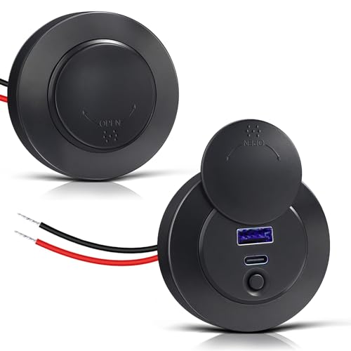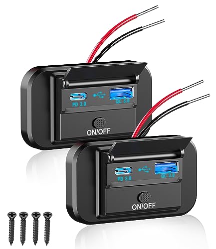 acegoo 12V USB-Uttag för Aluminium Bil Husbil USB C Uttag 12 Volt, Dual PD3.0 & QC3.0 Snabb laddning för Marin Båt Buss RV Lastbil, 2 Pcs