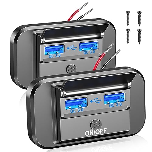 USB-uttag 12V 2-pack, Dubbel Quick Charge 3.0 12V USB-adapter med LED-voltmeter och strömbrytare, Vattentät aluminiumadapter för bil, husbil, motorcykel, lastbil, golf