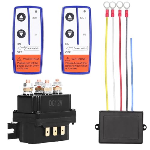 Winch Trådlös Fjärrkontroll, 12V 500A Vinschmagnetreläkontaktor och 2st Trådlös Vinschfjärrkontrollsats med 6 Skyddskåpor Universal för Trädgårdstraktor, Snöskoter
