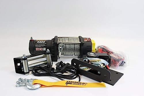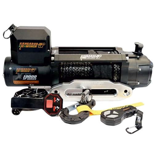 KANGAROO WINCH Snabb elektrisk vinsch 12 V med radiofjärrkontroll – 10 000 pund dragkraft – hållbart plastrep – perfekt för offroad – 4 x 4 skogs- och nyttofordon (K1000XP)