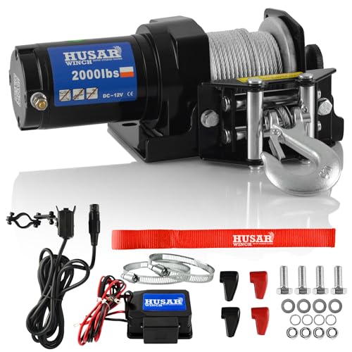 Husar Winch Elektrisk Vinsch 12V 2000 lbs | 907 kg – Slitstark Stålrep 15 meter, Trådbunden Fjärrkontroll, Automatisk Broms, Monteringssats – Ideal För Quads Och ATV/UTV/OFF ROAD