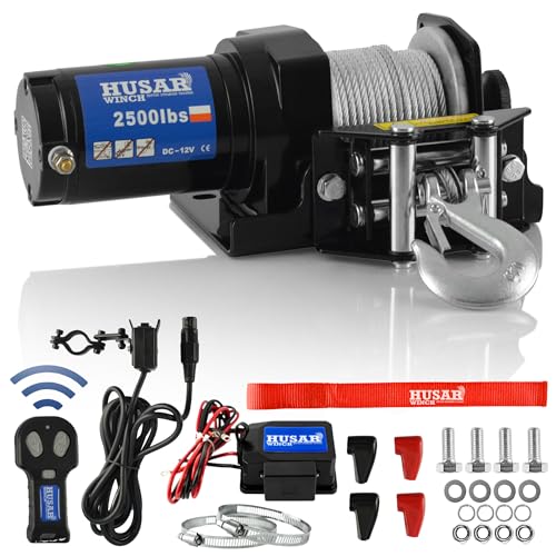 Husar Winch Elektrisk Vinsch 12V 2500 lbs | 1133 kg – Slitstark Stålrep 10 meter, Trådlös Fjärrkontroll, Automatisk Broms, Monteringssats – Ideal För Quads Och ATV/UTV/OFF ROAD