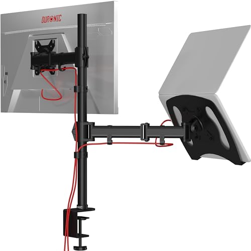 Duronic DM25L1X1 Skärmstativ | PC Skrivbordsfäste | Stål | För 13-27 Tum LED/LCD PC/TV Skärm & Laptop | Maxvikt 8kg | Justerbar Höjd| Lutning -90°+35°, Vridbar 180°, Rotation 360° | VESA 75/100