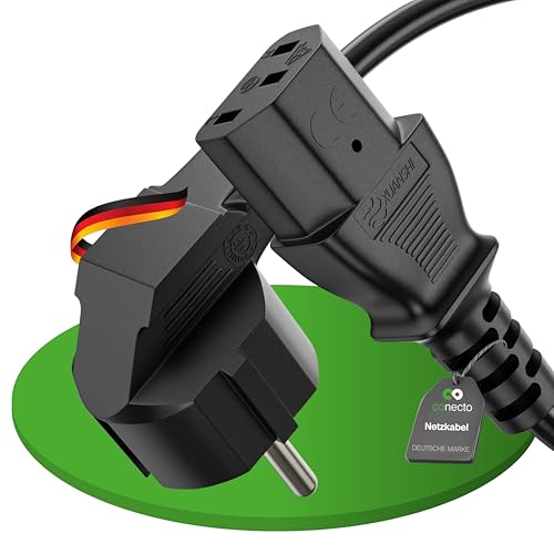 sonero Strömkabel för kall apparatkabel 3-polig, 15,0 m, 90° vinkel skyddskontakt Schuko kontakt kontakt kontakt till kallenhetskoppling C13-uttag, strömkabel strömkabel för bildskärm PC-skrivare,