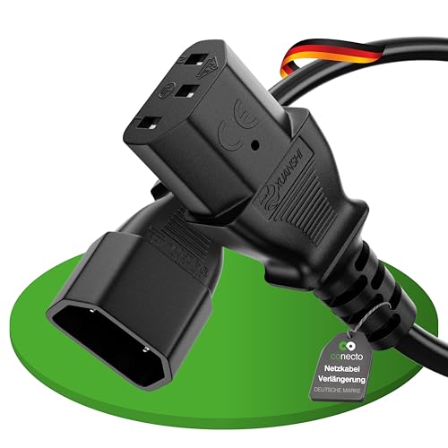 conecto kallenhetskabel, kallutrustning, förlängning 3-polig, 5,0 m, IEC-koppling C13-uttag till kallenheter, kontakt C14, strömkabel förlängningskabel för bildskärm PC-skrivare, svart