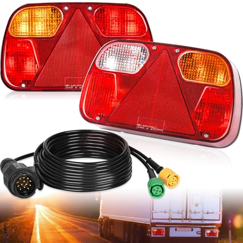 ETUKER 1 par LED-släpvagnar bakljus sats, släpvagn bakljus 12 V universell vattentät släpvagn bakljus kit, kabelansluten med 13-polig kontakt – 4 m kabel, för husvagn/husbil/lastbil/släpvagnar