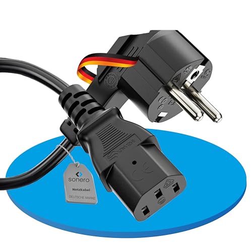 sonero Strömkabel för kallenhetskabel 3-polig, 5,0 m, skyddskontakt Schuko-kontakt kontakt till kallenhetskoppling C13-uttag, strömkabel nätdel strömkabel för bildskärm PC-skrivare, svart