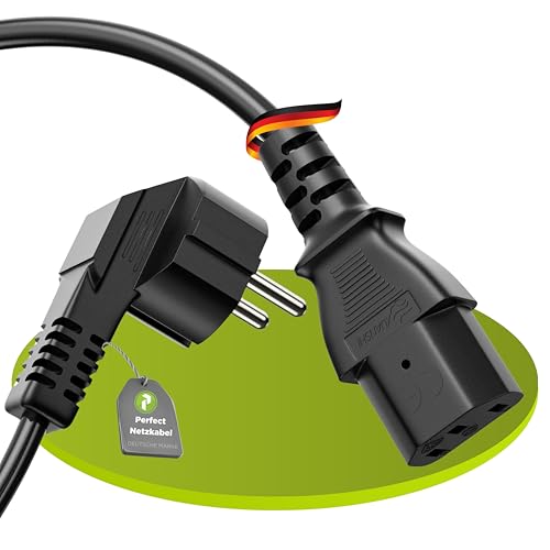 Perfect strömkabel kallenhetskabel 3-polig, 3,0 m, kontakt strömkontakt skyddskontakt till kallenhetskoppling C13-uttag, strömkabel nätkabel strömförsörjning för bildskärm PC-skrivare, svart