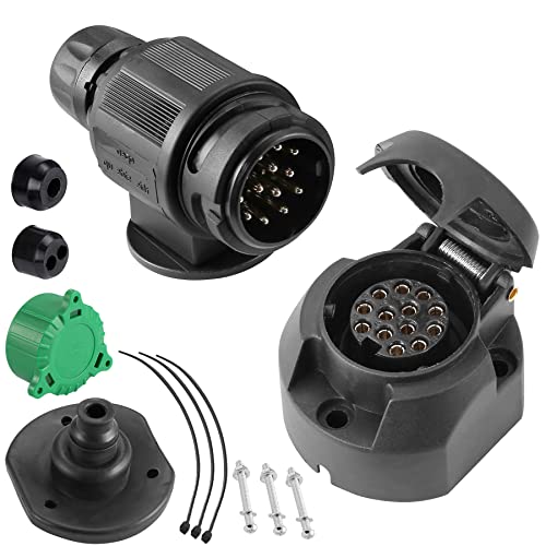 SPARKMOTO 13-polig släpvagnsplugg och uttag, 12 V släpvagnskontakt för bilar, släpvagnar, husvagnar, dragstång, cykelbärare, lastbil, traktor, skåpbilar, husbil, husbil, ATV (kort)