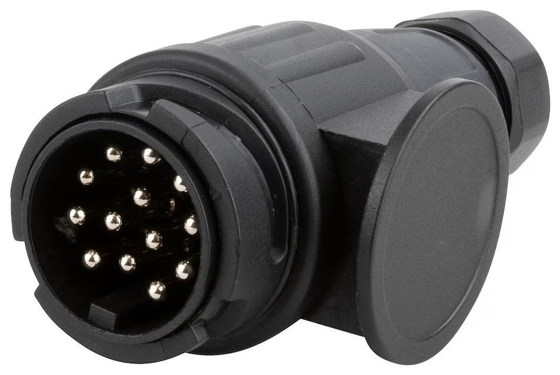 fouraces släpvagnskontakt - 13 polig, svart - inkl. kopplingsmall - 13 polig släpvagnskontakt