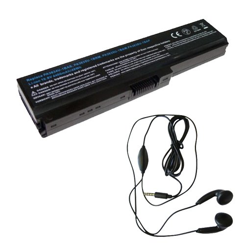 amsahr 3634-H-03 ersättande batteri för Toshiba 3634, B371/C, T550/D8AB, C640, C640D, Portege T130 - omfattningar stereo hörlurar svart