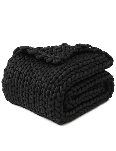 YNM Original handstickad filt | mjuk, andningsbar och bärbar, medelvikt tjockt stickat överkast för soffa, säng och mer | Snygg heminredning artikel (svart, 100 x 130 cm)