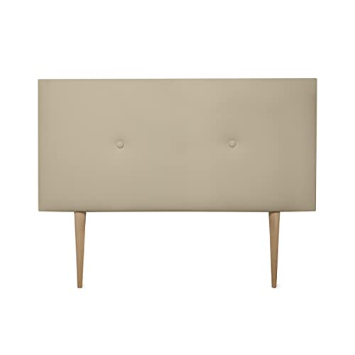 DUÉRMETE ONLINE Premium vadderad sänggavel i milan, med ben, högklassigt konstläder, trä, beige, 130 x 60 cm (säng 120)