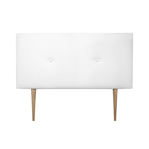 DUÉRMETE ONLINE Premium vadderad sänggavel i milan, med ben, högklassigt konstläder, trä, vit, 130 x 60 cm (säng 120)